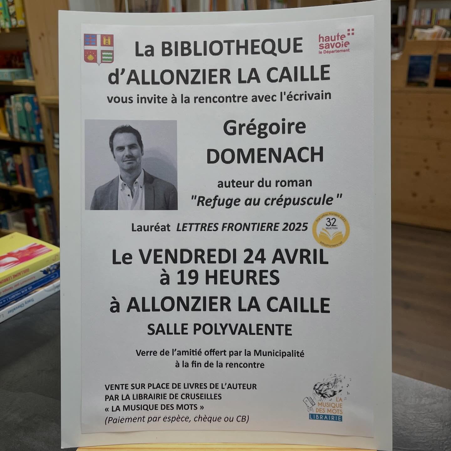 Rencontre d'auteur avec Grégoire Domenach à Allonzier vendredi 24 avril à 19h